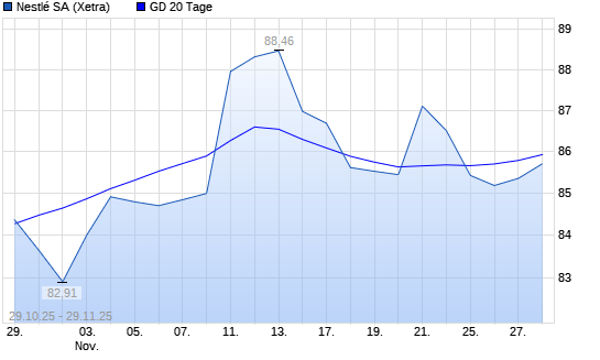 Mit dem Anstieg auf 86,00 EUR hat die Nestlé-Aktie am 28.11.2025 die 20-Tage-Linie nach oben gekreuzt.