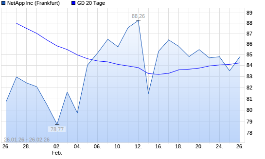 Mit dem Rücksetzer auf 83,52 EUR hat die NetApp-Aktie am 25.02.2026 die 20-Tage-Linie nach unten gekreuzt.