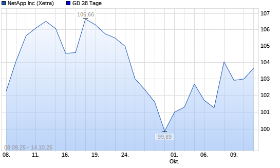 Mit dem Rücksetzer auf 98,33 EUR hat die NetApp-Aktie am 13.10.2025 die 38-Tage-Linie nach unten gekreuzt.