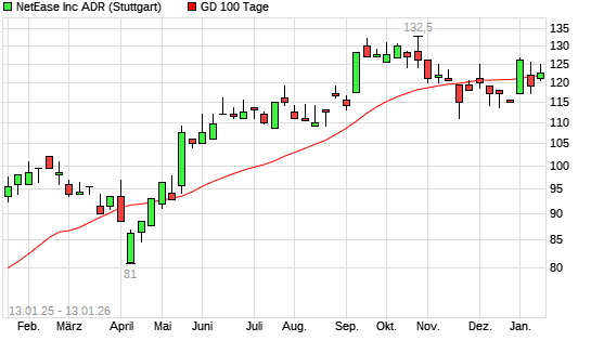 Mit dem Anstieg auf 124,00 EUR hat die NetEase-Aktie am 12.01.2026 die 100-Tage-Linie nach oben gekreuzt.