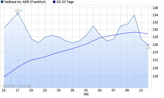 Mit dem Rücksetzer auf 127,50 EUR hat die NetEase-Aktie am 13.10.2025 die 20-Tage-Linie nach unten gekreuzt.