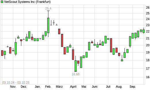 Mit dem Anstieg auf 22,61 EUR hat die NetScout Systems-Aktie (ISIN US64115T1043) am 02.10.2025 ein neues 6-Monats-Hoch erreicht und damit den Kurs vom 26.09.2025 eingestellt.