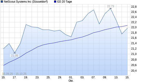 Mit dem Rücksetzer auf 21,86 EUR hat die NetScout Systems-Aktie am 14.10.2025 die 20-Tage-Linie nach unten gekreuzt.