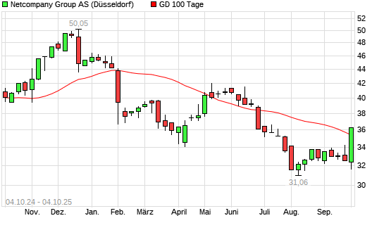 Mit dem Anstieg auf 36,22 EUR hat die Netcompany Group-Aktie am 03.10.2025 die 100-Tage-Linie nach oben gekreuzt.