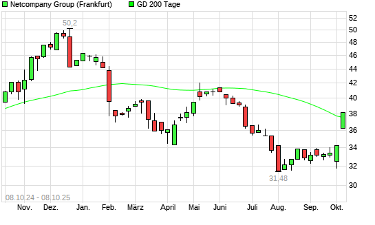 Mit dem Anstieg auf 38,50 EUR hat die Netcompany Group-Aktie am 07.10.2025 die 200-Tage-Linie nach oben gekreuzt.