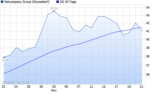 Mit dem Rücksetzer auf 41,44 EUR hat die Netcompany Group-Aktie am 21.11.2025 die 20-Tage-Linie nach unten gekreuzt.