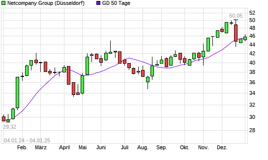 Mit dem Rücksetzer auf 45,82 EUR hat die Netcompany Group-Aktie am 03.01.2025 die 50-Tage-Linie nach unten gekreuzt.