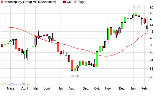 Mit dem Rücksetzer auf 42,66 EUR hat die Netcompany Group-Aktie am 06.02.2026 die 100-Tage-Linie nach unten gekreuzt.Die Netcompany Group-Aktie befindet sich seit dem 20.10.2025 im langfristigen ...weiterlesen