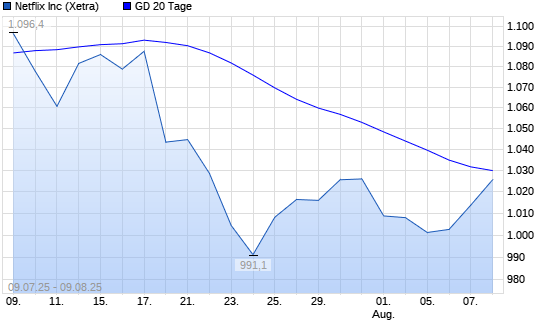 Mit dem Anstieg auf 1.038,80 EUR hat die Netflix-Aktie am 08.08.2025 die 20-Tage-Linie nach oben gekreuzt.