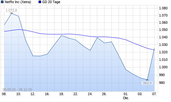 Mit dem Anstieg auf 1.022,80 EUR hat die Netflix-Aktie am 07.10.2025 die 20-Tage-Linie nach oben gekreuzt.