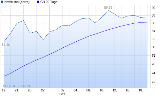 Mit dem Rücksetzer auf 858,70 EUR hat die Netflix-Aktie am 18.12.2024 die 20-Tage-Linie nach unten gekreuzt.