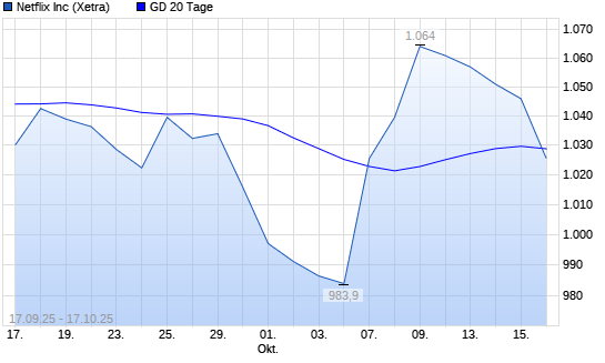 Mit dem Rücksetzer auf 1.009,20 EUR hat die Netflix-Aktie am 16.10.2025 die 20-Tage-Linie nach unten gekreuzt.