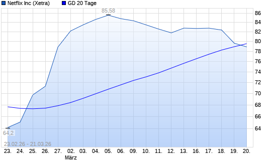Mit dem Rücksetzer auf 78,95 EUR hat die Netflix-Aktie am 20.03.2026 die 20-Tage-Linie nach unten gekreuzt.