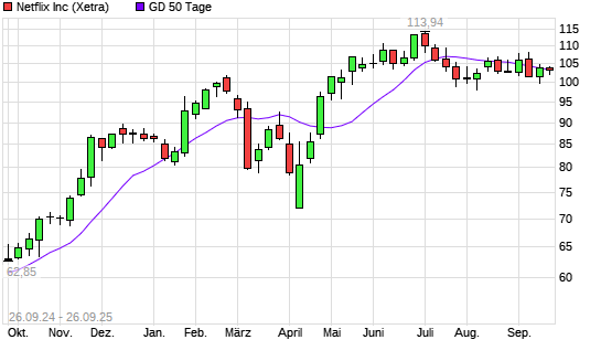 Mit dem Anstieg auf 1.034,00 EUR hat die Netflix-Aktie am 25.09.2025 die 50-Tage-Linie nach oben gekreuzt.Die Netflix-Aktie befindet sich seit dem 19.10.2023 im langfristigen Aufwärtstrend und ...weiterlesen