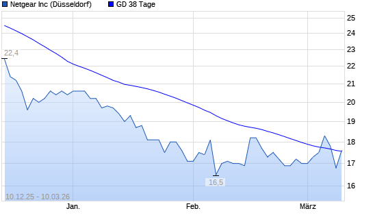 Mit dem Rücksetzer auf 17,00 EUR hat die Netgear-Aktie am 09.03.2026 die 38-Tage-Linie nach unten gekreuzt.