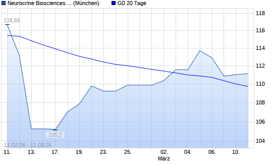 Mit dem Anstieg auf 111,10 EUR hat die Neurocrine Biosciences-Aktie am 10.03.2026 die 20-Tage-Linie nach oben gekreuzt.
