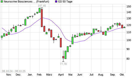 Mit dem Anstieg auf 118,35 EUR hat die Neurocrine Biosciences-Aktie am 07.10.2025 die 50-Tage-Linie nach oben gekreuzt.