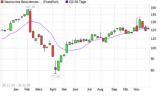 Mit dem Anstieg auf 123,85 EUR hat die Neurocrine Biosciences-Aktie am 24.11.2025 die 50-Tage-Linie nach oben gekreuzt.