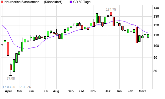 Mit dem Anstieg auf 112,65 EUR hat die Neurocrine Biosciences-Aktie am 16.03.2026 die 50-Tage-Linie nach oben gekreuzt.