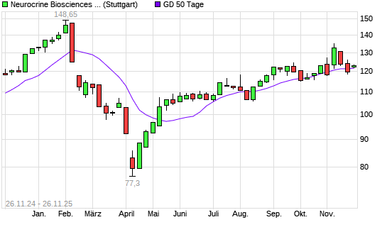 Mit dem Rücksetzer auf 121,55 EUR hat die Neurocrine Biosciences-Aktie am 25.11.2025 die 50-Tage-Linie nach unten gekreuzt.