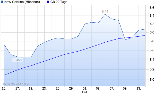 Mit dem Anstieg auf 6,12 EUR hat die New Gold-Aktie am 13.10.2025 die 20-Tage-Linie nach oben gekreuzt.