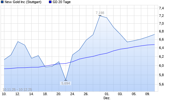 Mit dem Rücksetzer auf 6,40 EUR hat die New Gold-Aktie am 09.12.2025 die 20-Tage-Linie nach unten gekreuzt.