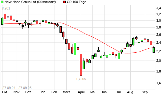 Mit dem Anstieg auf 2,30 EUR hat die New Hope-Aktie am 26.09.2025 die 100-Tage-Linie nach oben gekreuzt.