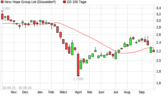 Mit dem Rücksetzer auf 2,23 EUR hat die New Hope-Aktie am 29.09.2025 die 100-Tage-Linie nach unten gekreuzt.