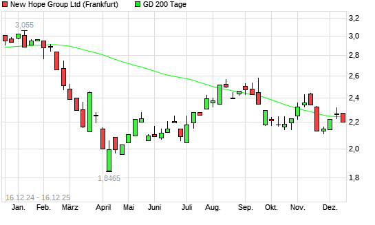 Mit dem Rücksetzer auf 2,23 EUR hat die New Hope-Aktie am 15.12.2025 die 200-Tage-Linie nach unten gekreuzt.