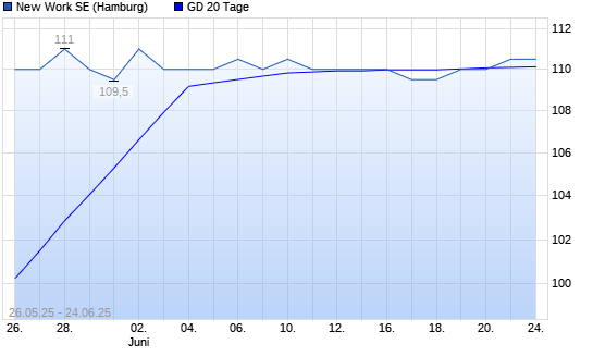 Mit dem Anstieg auf 110,50 EUR hat die New Work-Aktie am 23.06.2025 die 20-Tage-Linie nach oben gekreuzt.