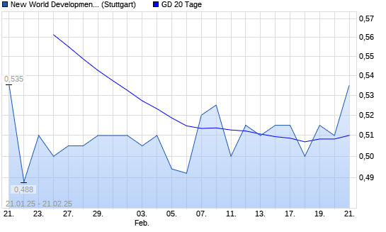 Mit dem Rücksetzer auf 0,51 EUR hat die New World Development Co.-Aktie am 20.02.2025 die 20-Tage-Linie nach unten gekreuzt.