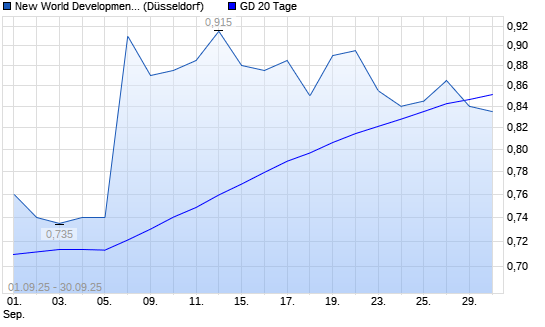Mit dem Rücksetzer auf 0,83 EUR hat die New World Development Co.-Aktie am 29.09.2025 die 20-Tage-Linie nach unten gekreuzt.
