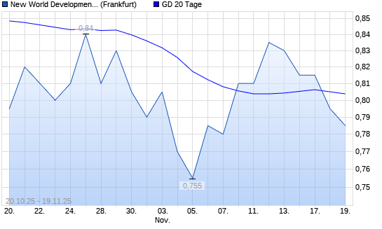 Mit dem Rücksetzer auf 0,80 EUR hat die New World Development Co.-Aktie am 18.11.2025 die 20-Tage-Linie nach unten gekreuzt.