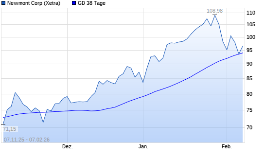 Mit dem Anstieg auf 97,60 EUR hat die Newmont Mining-Aktie am 06.02.2026 die 38-Tage-Linie nach oben gekreuzt.