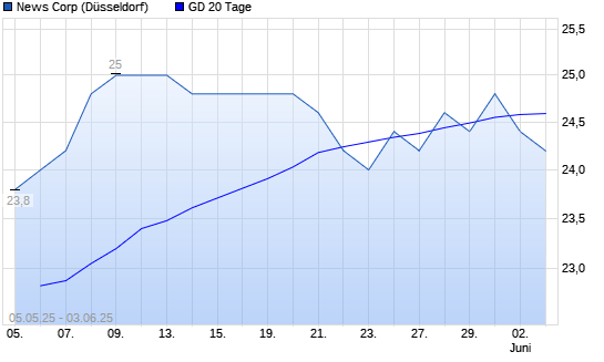 Mit dem Rücksetzer auf 24,20 EUR hat die News Corp A-Aktie am 02.06.2025 die 20-Tage-Linie nach unten gekreuzt.
