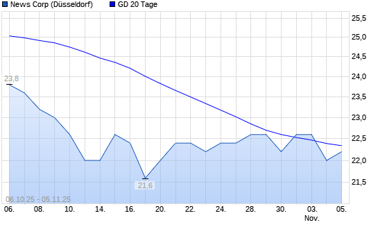 Mit dem Rücksetzer auf 22,20 EUR hat die News Corp A-Aktie am 04.11.2025 die 20-Tage-Linie nach unten gekreuzt.