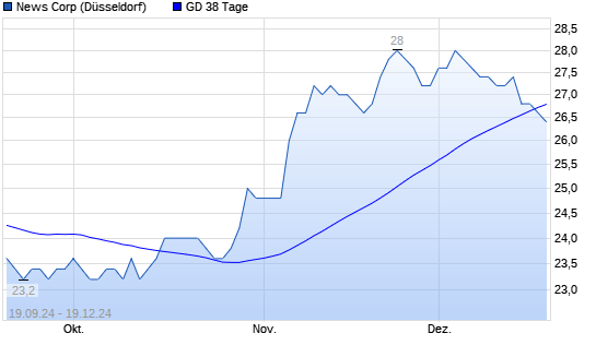 Mit dem Rücksetzer auf 26,60 EUR hat die News Corp A-Aktie am 18.12.2024 die 38-Tage-Linie nach unten gekreuzt.