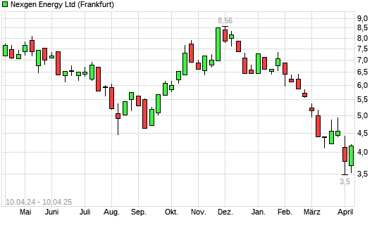 Mit dem Rücksetzer auf 3,53 EUR hat die Nexgen Energy-Aktie (ISIN CA65340P1062) am 09.04.2025 ein neues 12-Monats-Tief erreicht und damit den Kurs vom 07.04.2025 eingestellt.