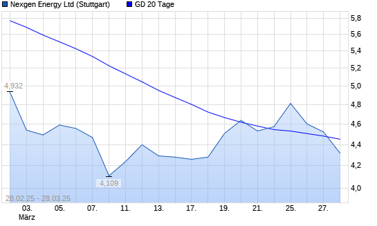 Mit dem Anstieg auf 4,72 EUR hat die Nexgen Energy-Aktie am 27.03.2025 die 20-Tage-Linie nach oben gekreuzt.