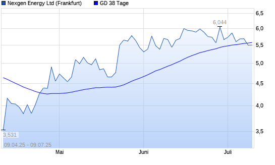 Mit dem Rücksetzer auf 5,50 EUR hat die Nexgen Energy-Aktie am 08.07.2025 die 38-Tage-Linie nach unten gekreuzt.