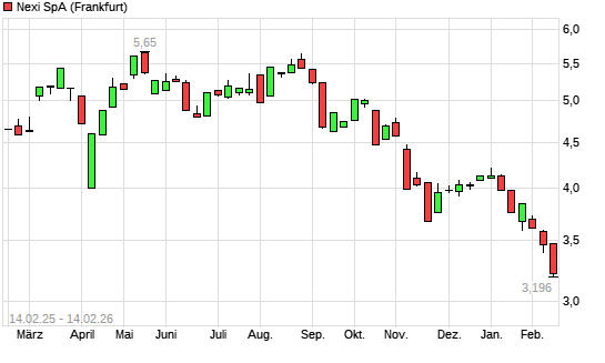 Mit dem Rücksetzer auf 3,18 EUR hat die Nexi-Aktie (ISIN IT0005366767) am 13.02.2026 ein neues All-Time-Low erreicht und damit den Kurs vom 12.02.2026 eingestellt.