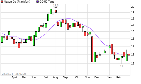 Mit dem Anstieg auf 13,60 EUR hat die Nexon-Aktie am 25.02.2025 die 50-Tage-Linie nach oben gekreuzt.