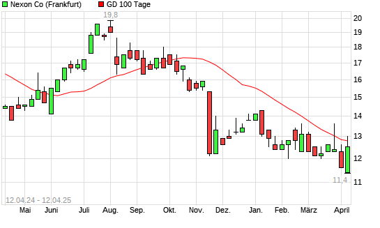 Mit dem Rücksetzer auf 12,80 EUR hat die Nexon-Aktie am 11.04.2025 die 100-Tage-Linie nach unten gekreuzt.