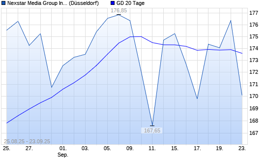 Mit dem Anstieg auf 179,10 EUR hat die Nexstar Broadcast Group-Aktie am 22.09.2025 die 20-Tage-Linie nach oben gekreuzt.