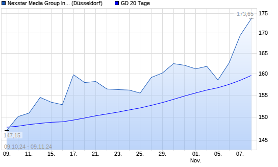 Mit dem Rücksetzer auf 158,70 EUR hat die Nexstar Broadcast Group-Aktie am 08.11.2024 die 20-Tage-Linie nach unten gekreuzt.