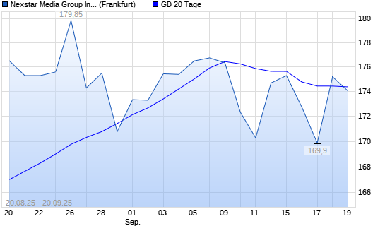 Mit dem Rücksetzer auf 174,05 EUR hat die Nexstar Broadcast Group-Aktie am 19.09.2025 die 20-Tage-Linie nach unten gekreuzt.