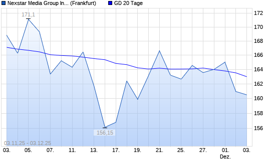 Mit dem Rücksetzer auf 160,95 EUR hat die Nexstar Broadcast Group-Aktie am 02.12.2025 die 20-Tage-Linie nach unten gekreuzt.