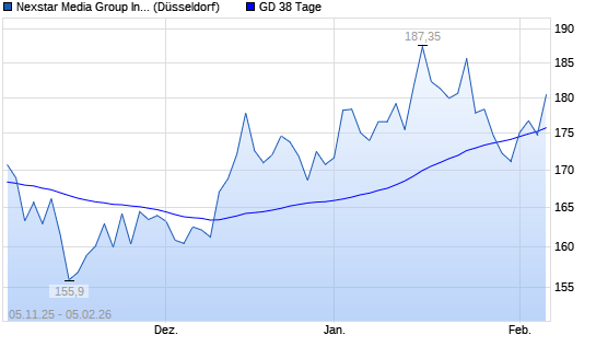 Mit dem Rücksetzer auf 174,80 EUR hat die Nexstar Broadcast Group-Aktie am 04.02.2026 die 38-Tage-Linie nach unten gekreuzt.
