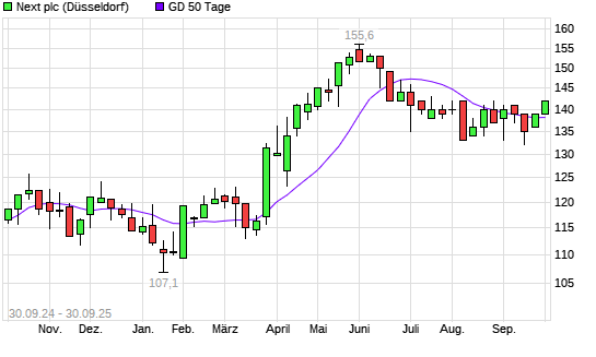 Mit dem Anstieg auf 140,00 EUR hat die Next-Aktie am 29.09.2025 die 50-Tage-Linie nach oben gekreuzt.