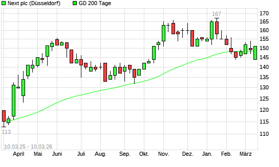 Mit dem Rücksetzer auf 147,00 EUR hat die Next-Aktie am 09.03.2026 die 200-Tage-Linie nach unten gekreuzt.